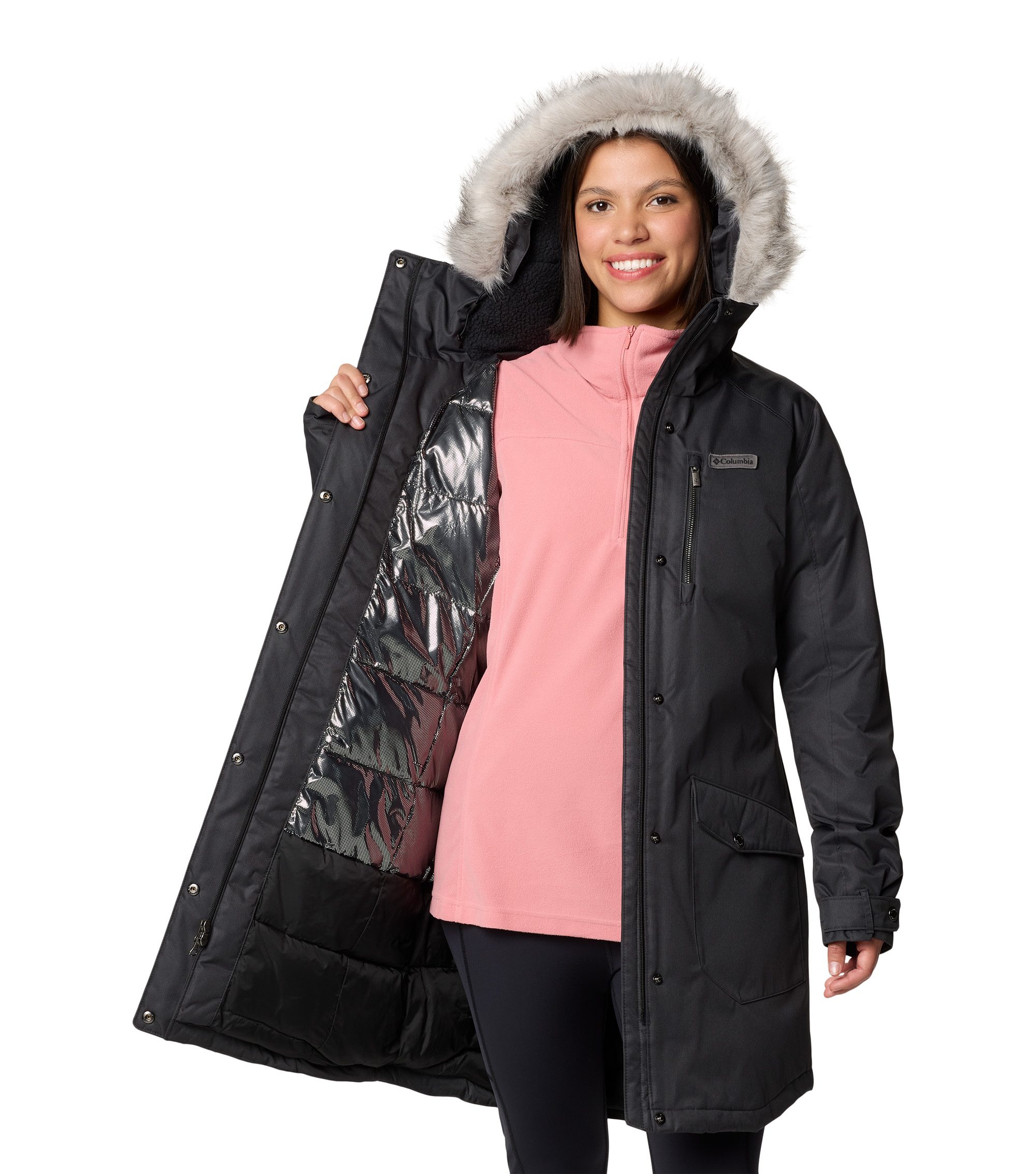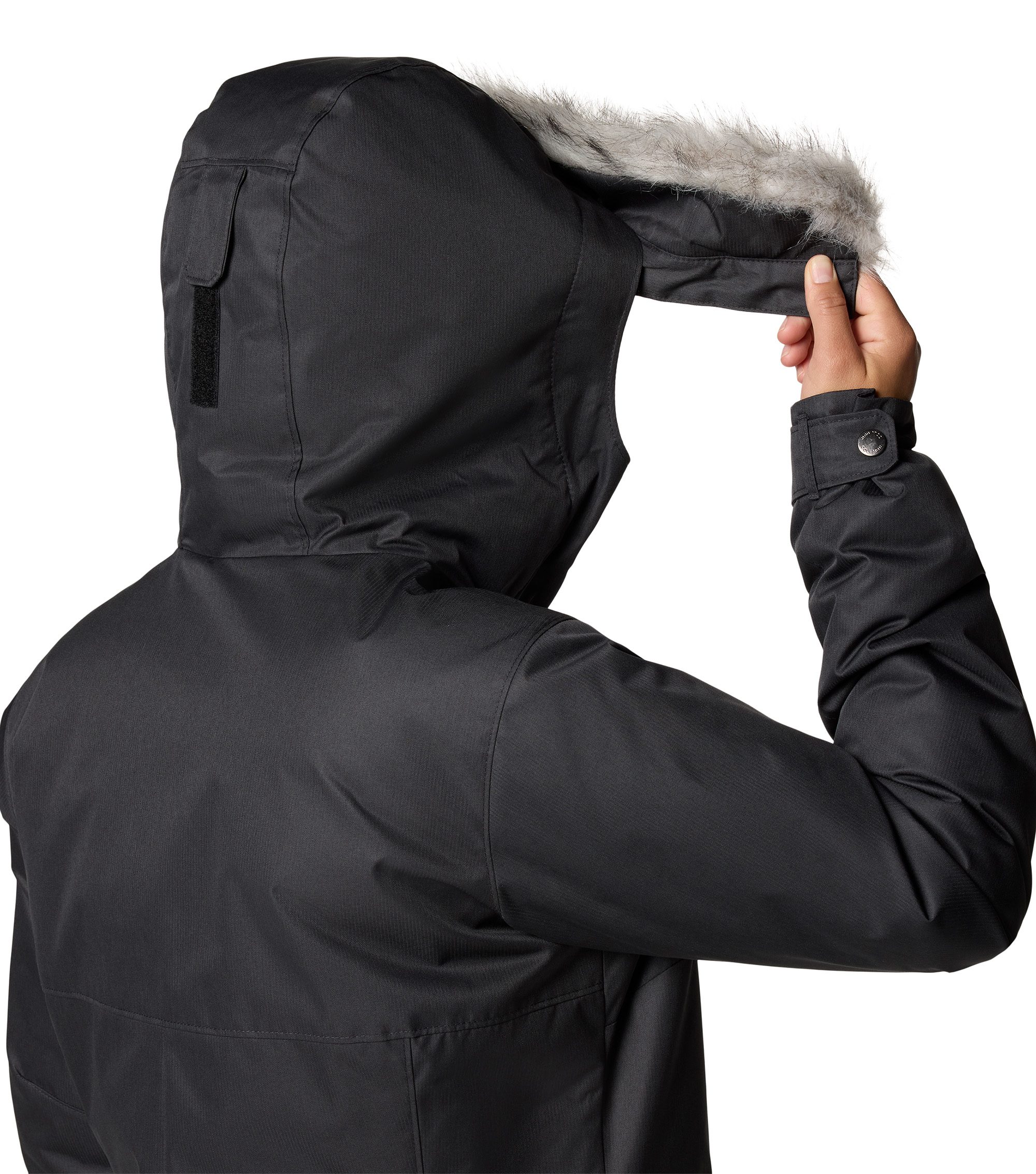 Removable faux fur trim on the fleece-lined hood for extra warmth and styling options.