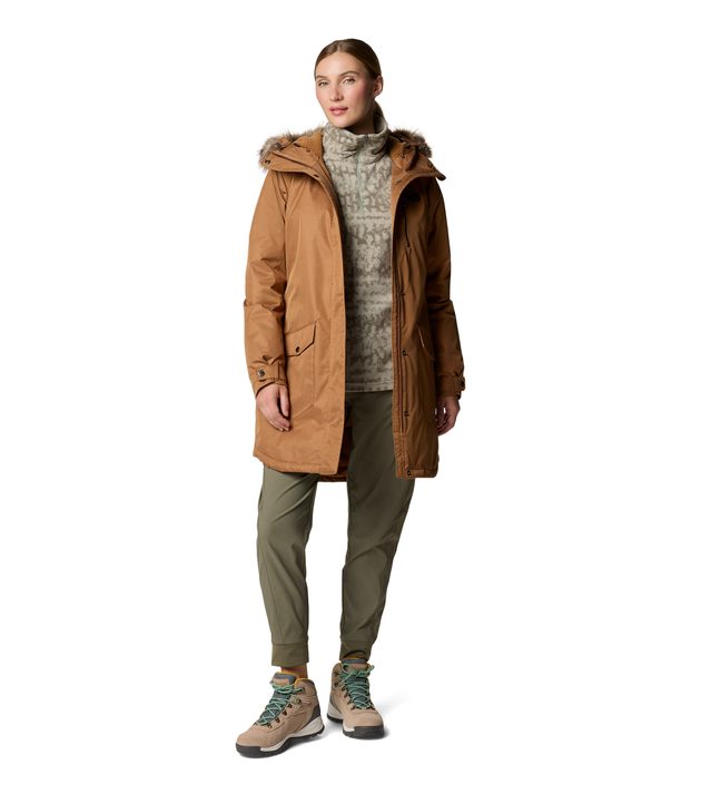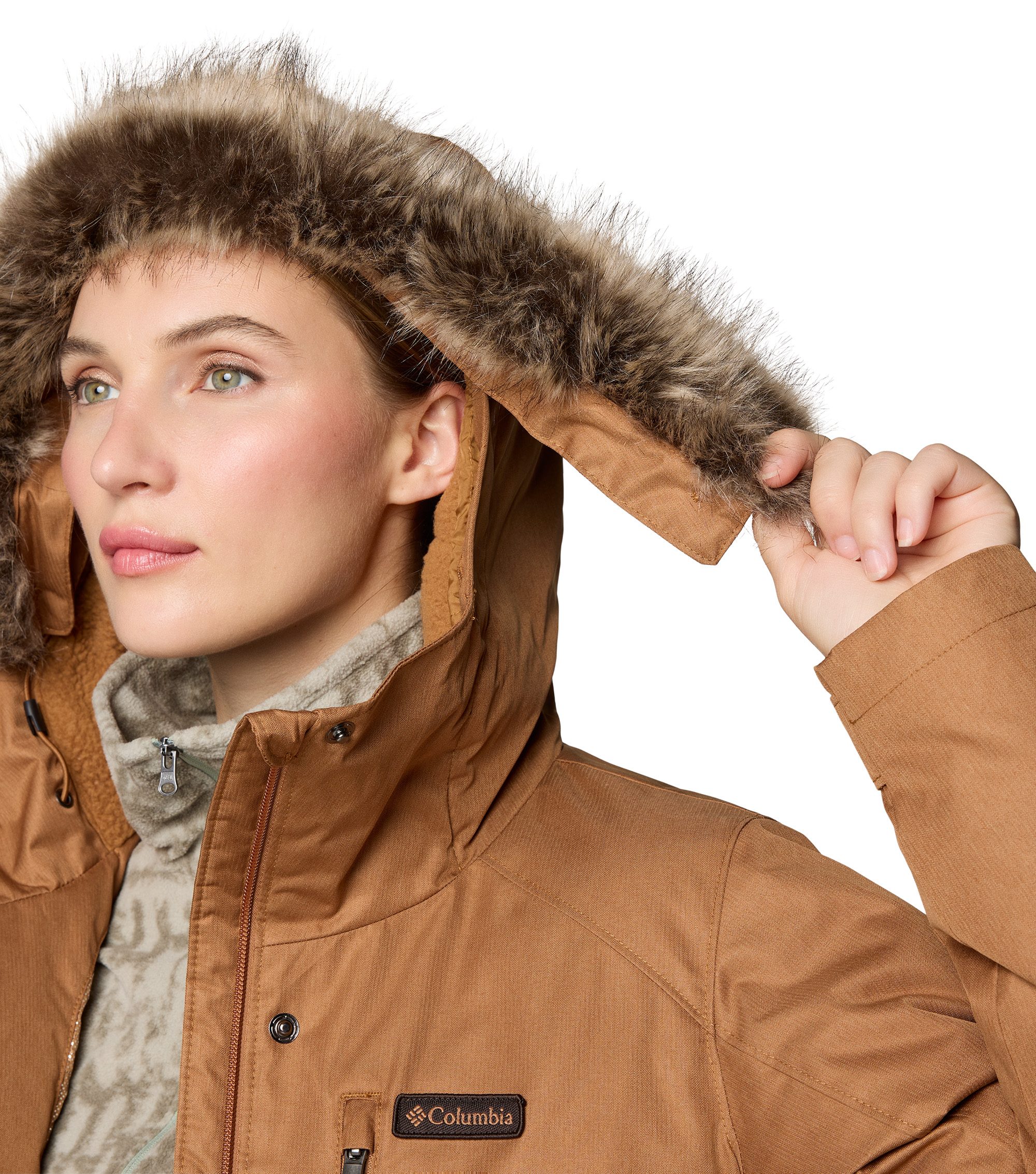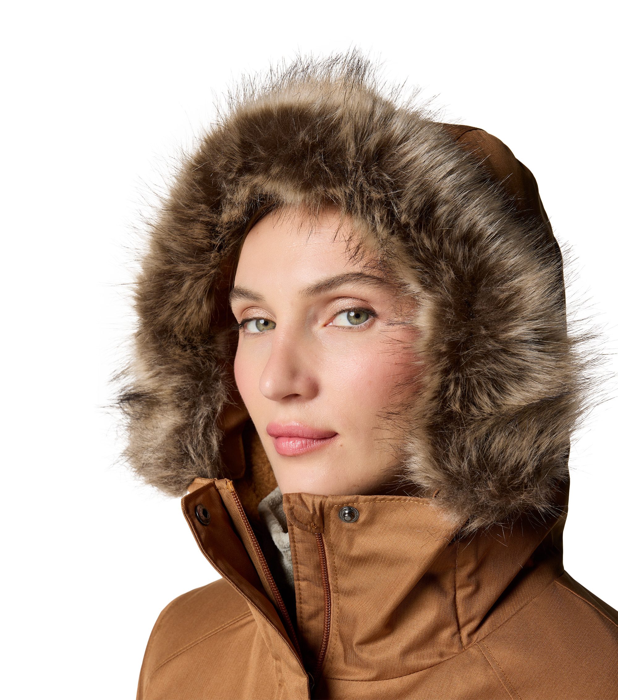 Removable faux fur trim on the fleece-lined hood for extra warmth and styling options.