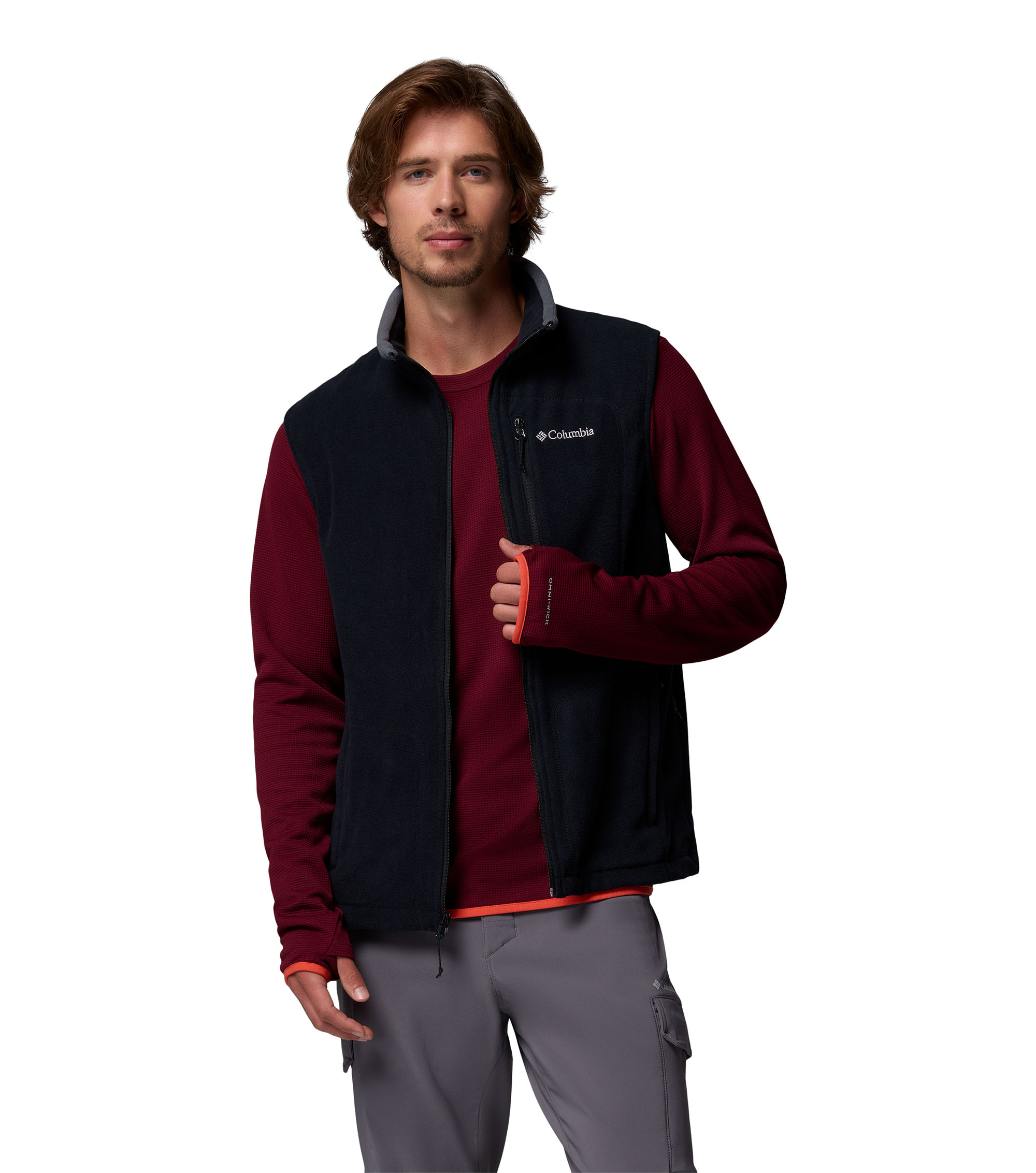 Layer up in this cosy fleece vest, ideal for chilly mornings on the trail made from super soft fleece fabric that keeps you warm to the core. Stash your essentials in the zippered chest and hand pockets.