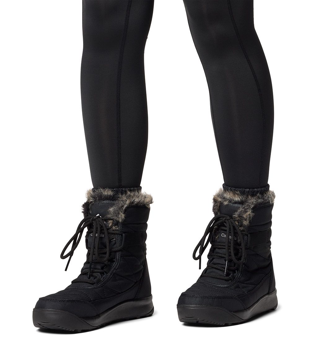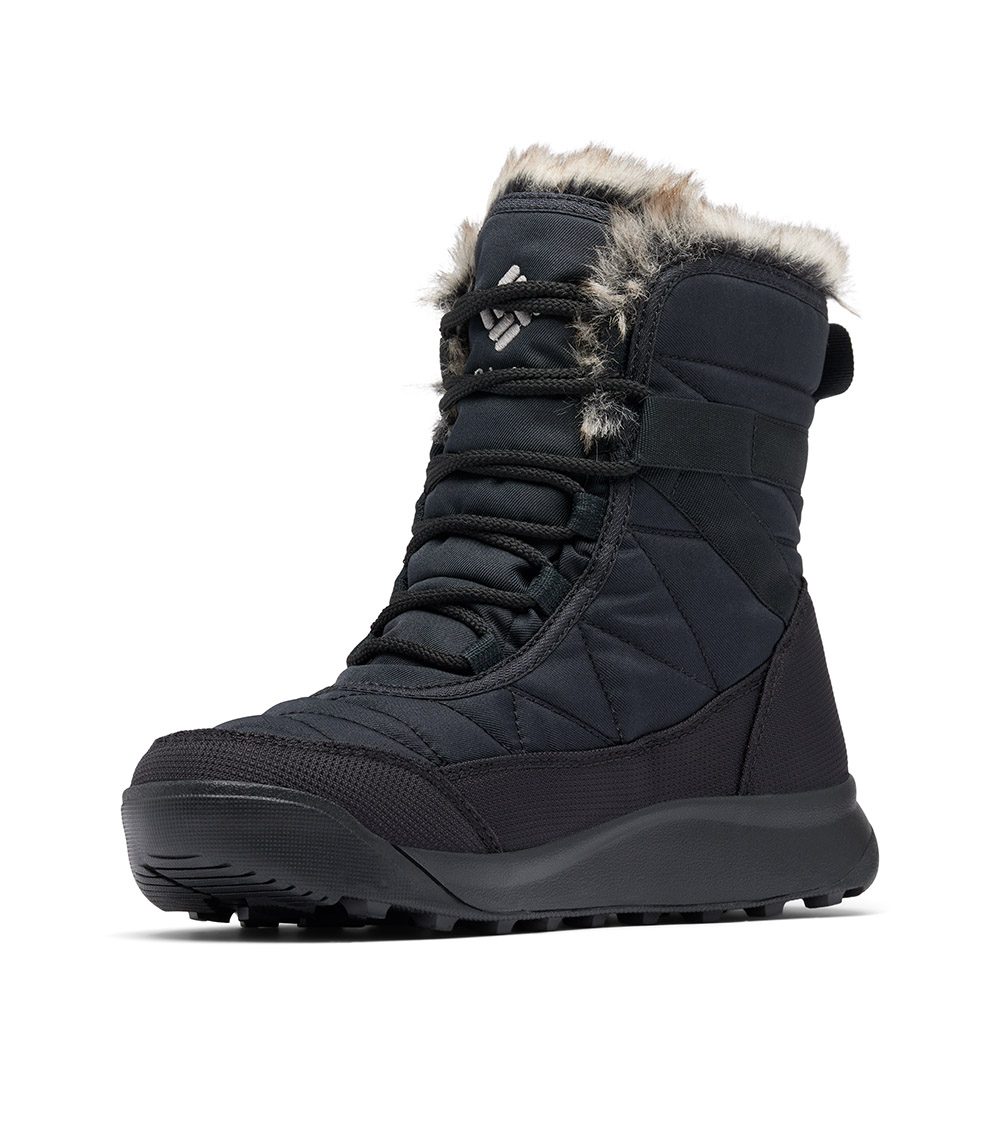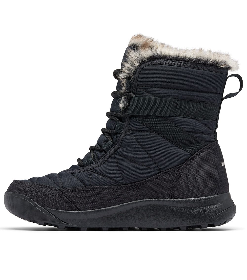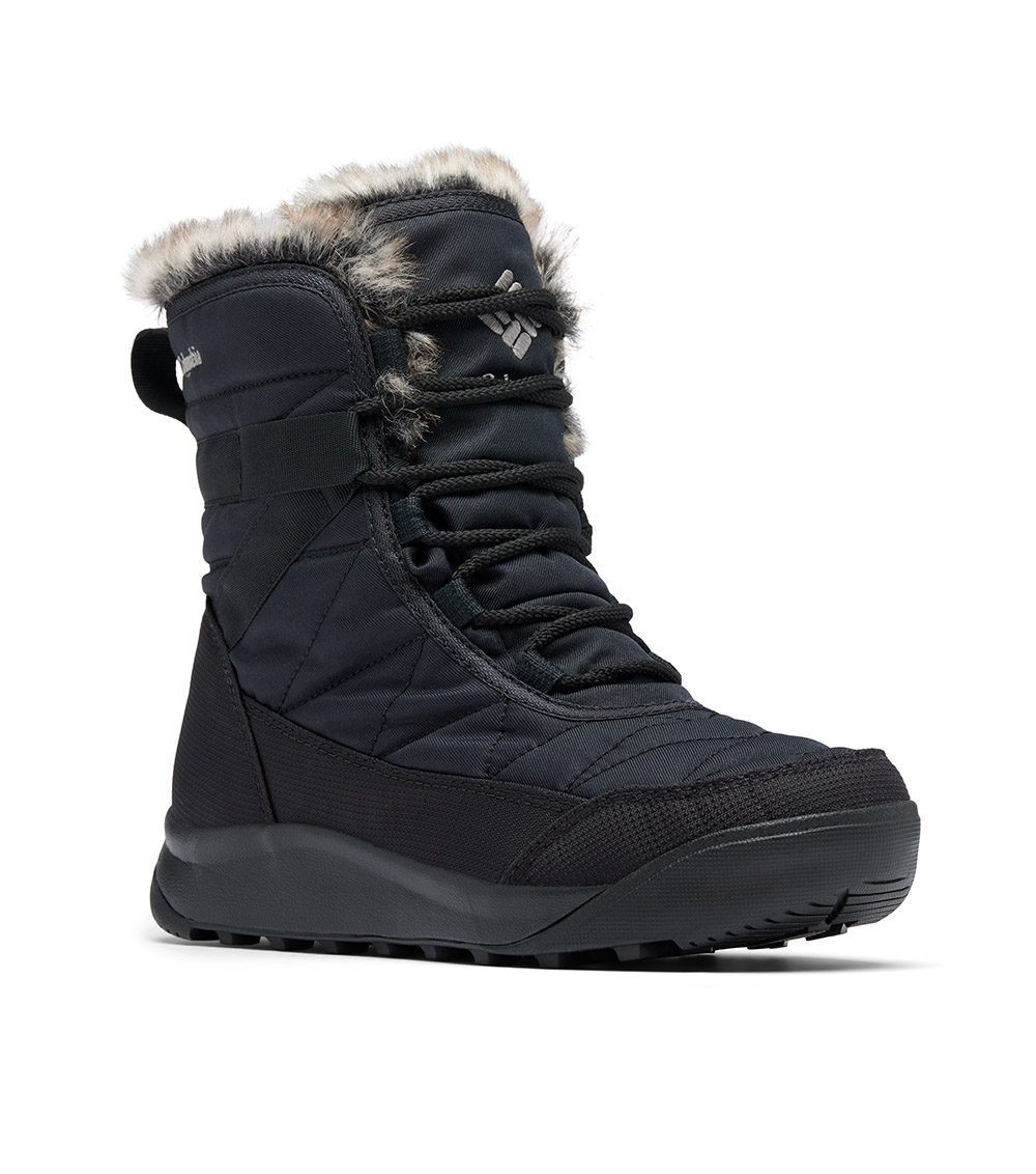 Waterproof textile upper sheds water while faux fur lining keeps the heat in.
