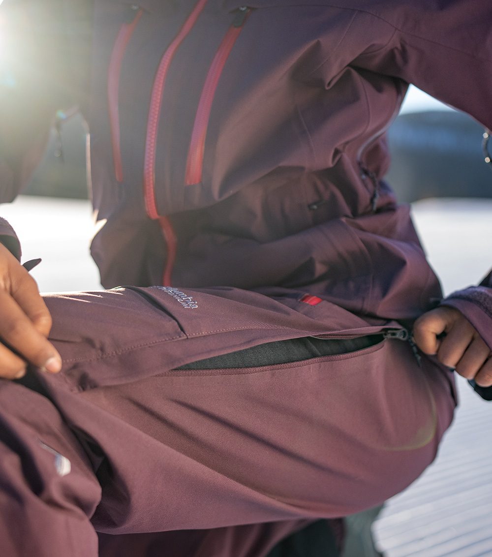 Two-way side zippers increase airflow, so you don’t overheat on the slopes.