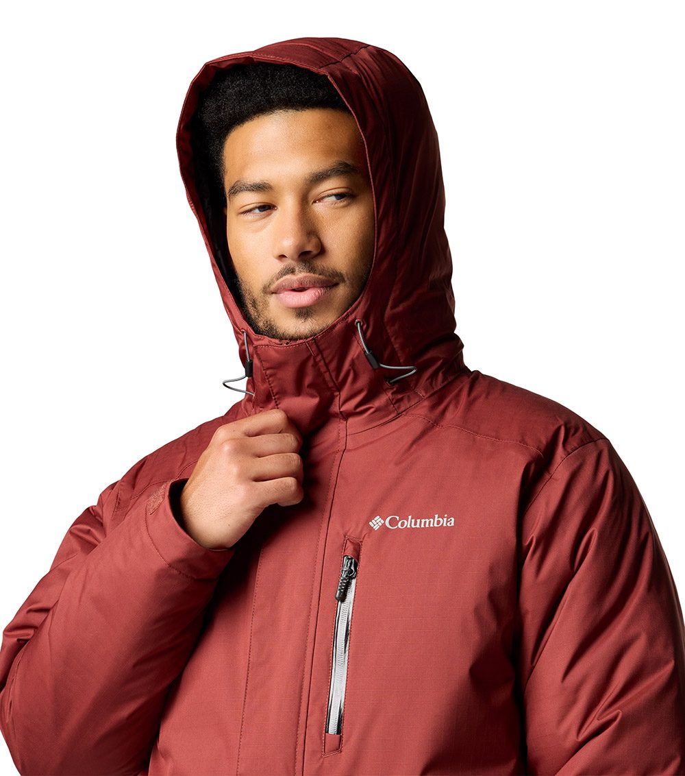 - Drawcord-adjustable hood and hem seal out the elements