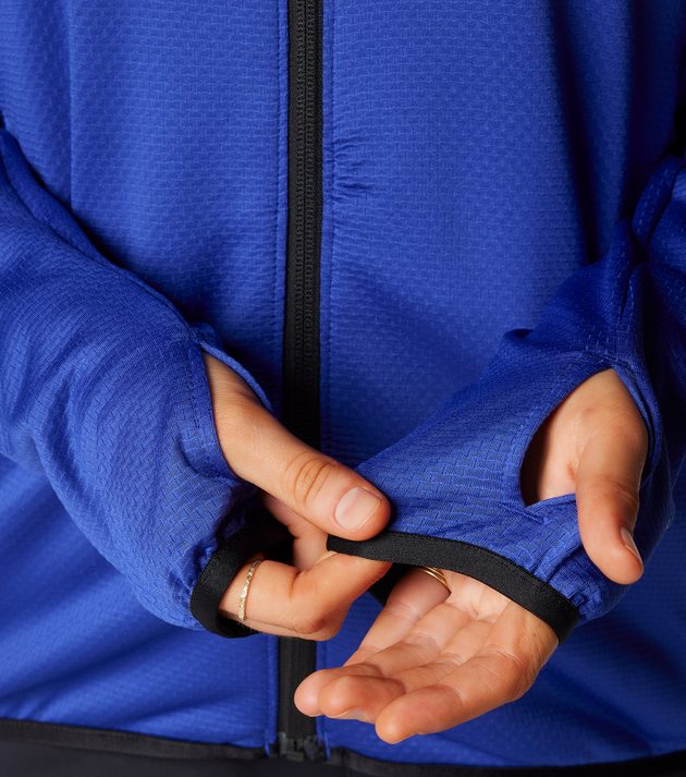 - Thumbholes on the cuffs help keep sleeves in place and add coverage over your ha
