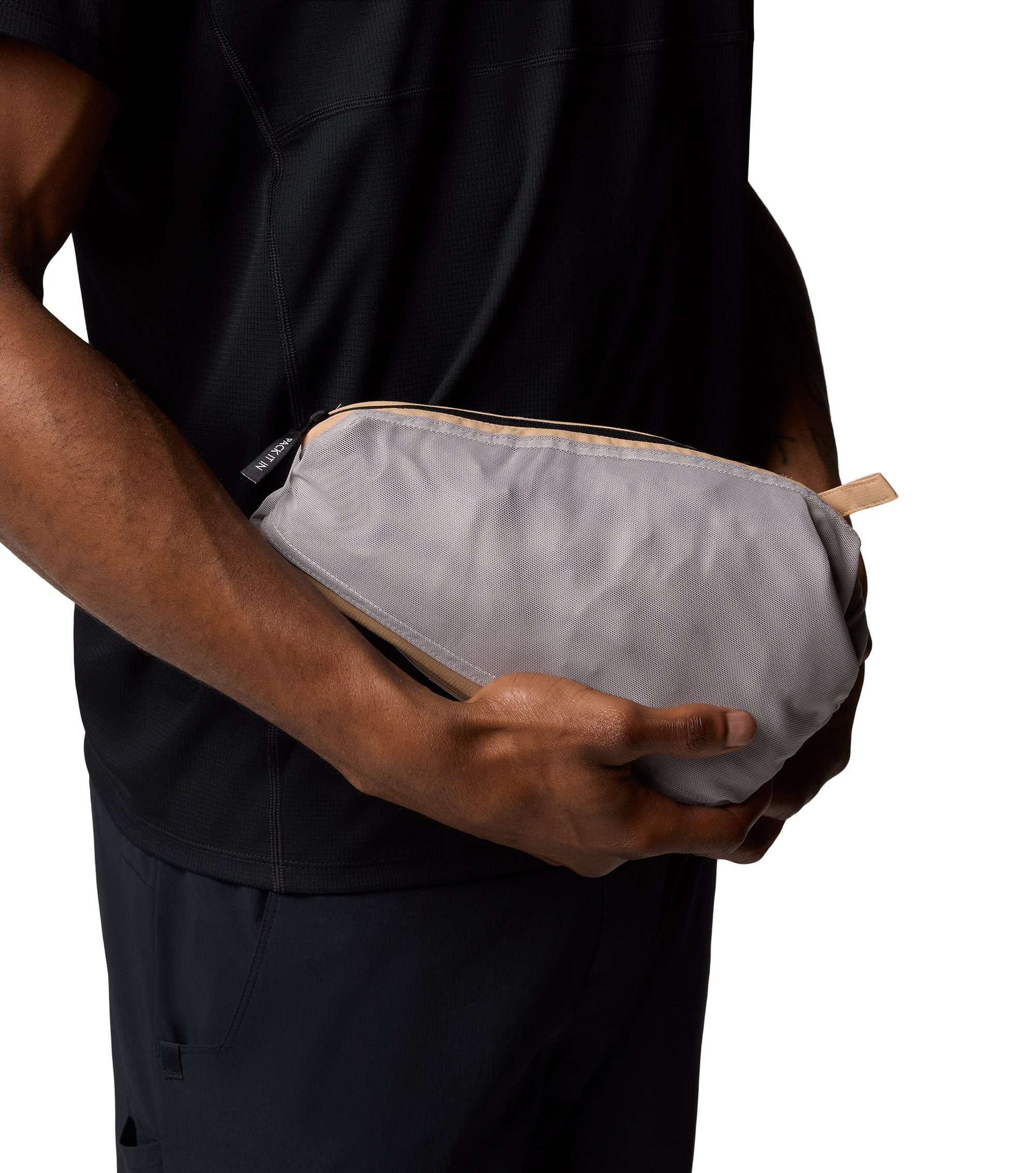 The whole jacket packs into one of the hand pockets: turn packable pocket inside out, stuff jacket inside, zip up, and go.