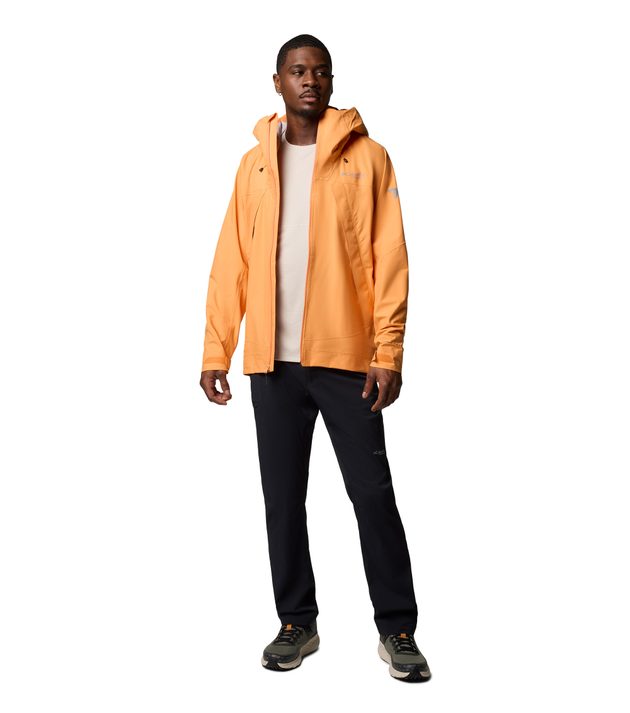 Fully seam-sealed, waterproof, and breathable, this rain shell features lightweight three-layer matte fabric with adjustable weather-ready details to keep you completely dry inside and out.