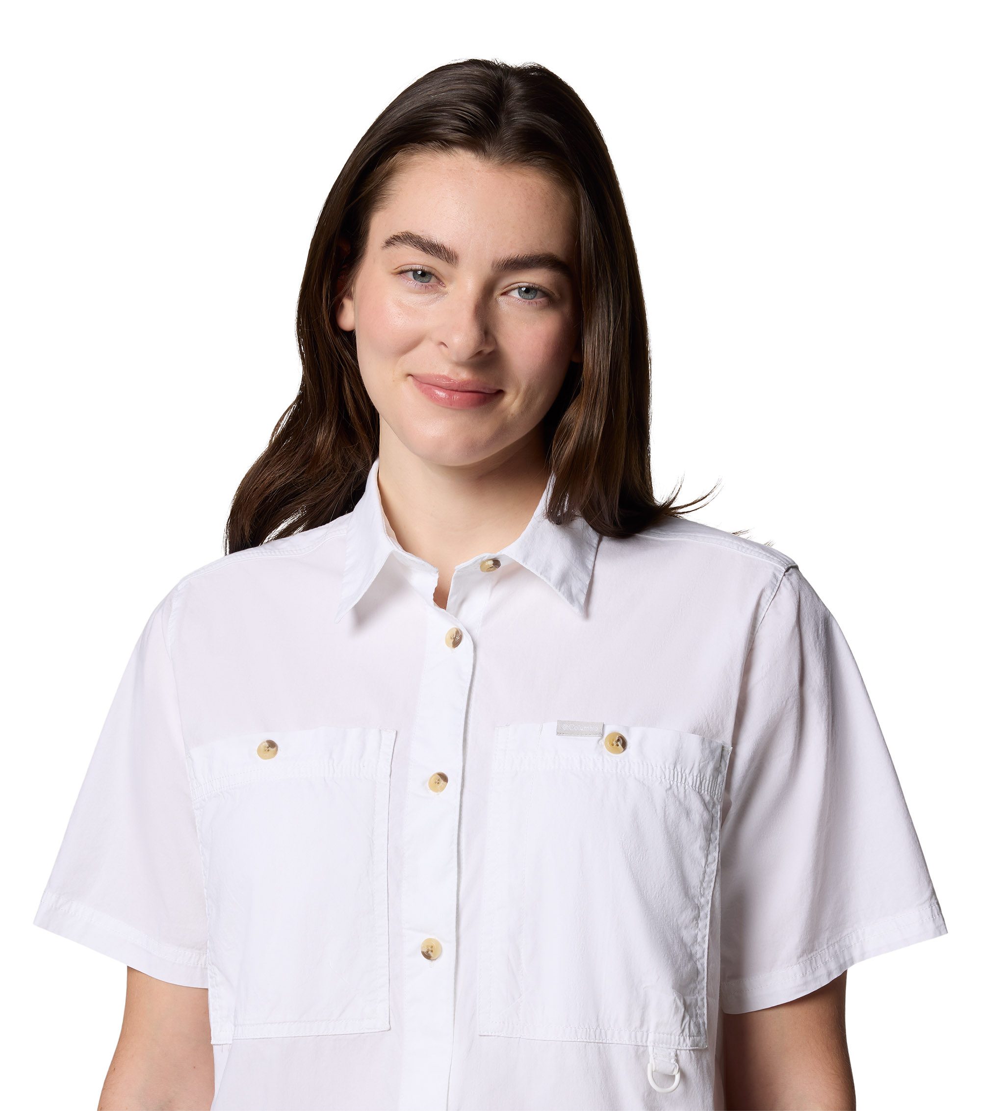 A shirt ready for adventure, this short-sleeve button-up has a D-ring for carrying a tool, plus pockets for holding small items for hikes and beyond.