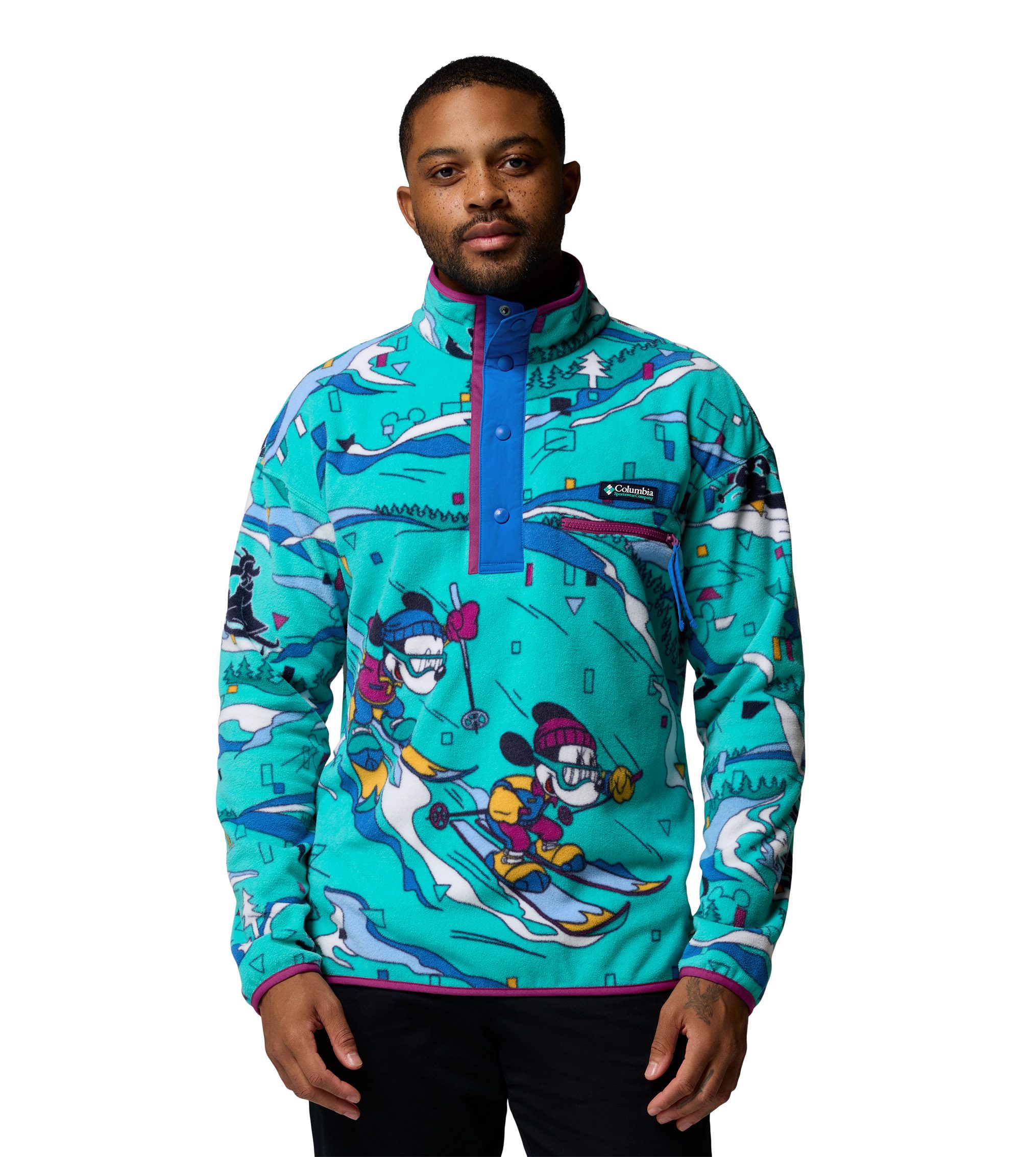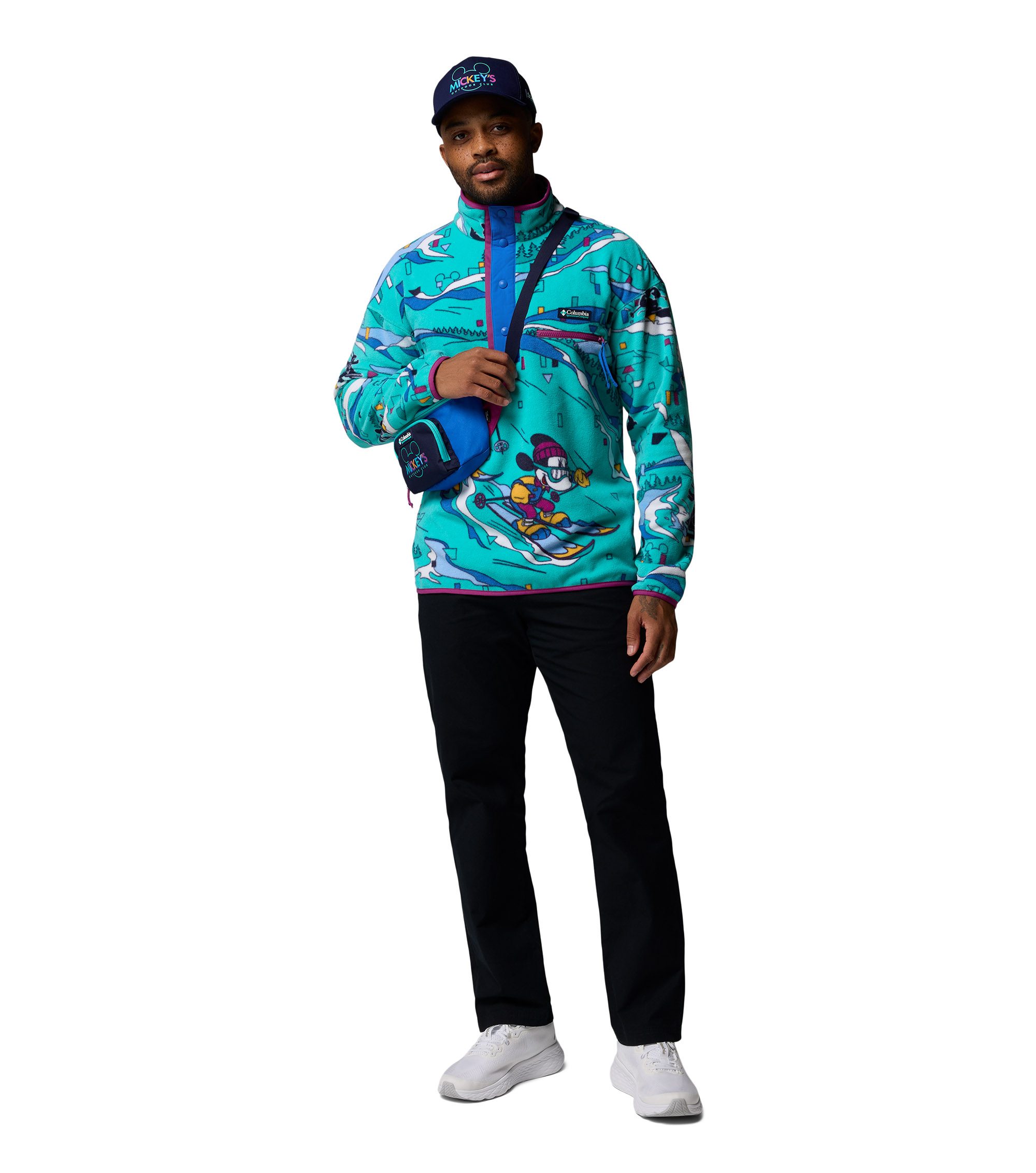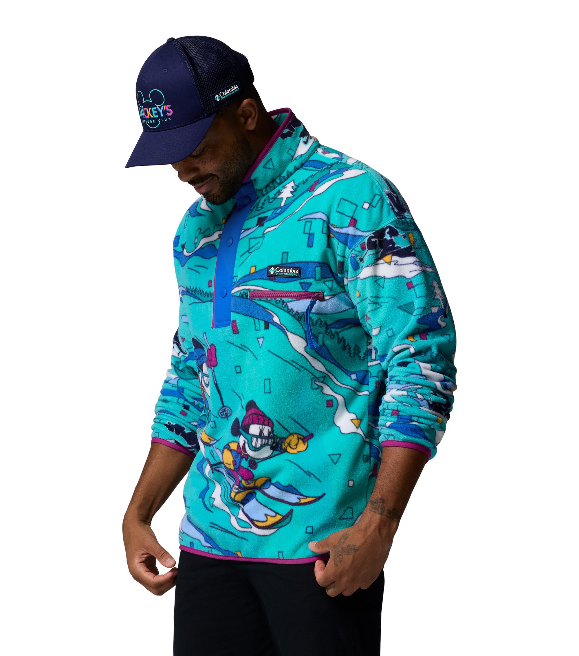 Feel peak winter comfort in this special-edition fleece with 90s-inspired prints featuring Disney's Mickey & Friends on a dream ski vacation. With binding on the cuffs and hem, cold stays out and warmth stays in.