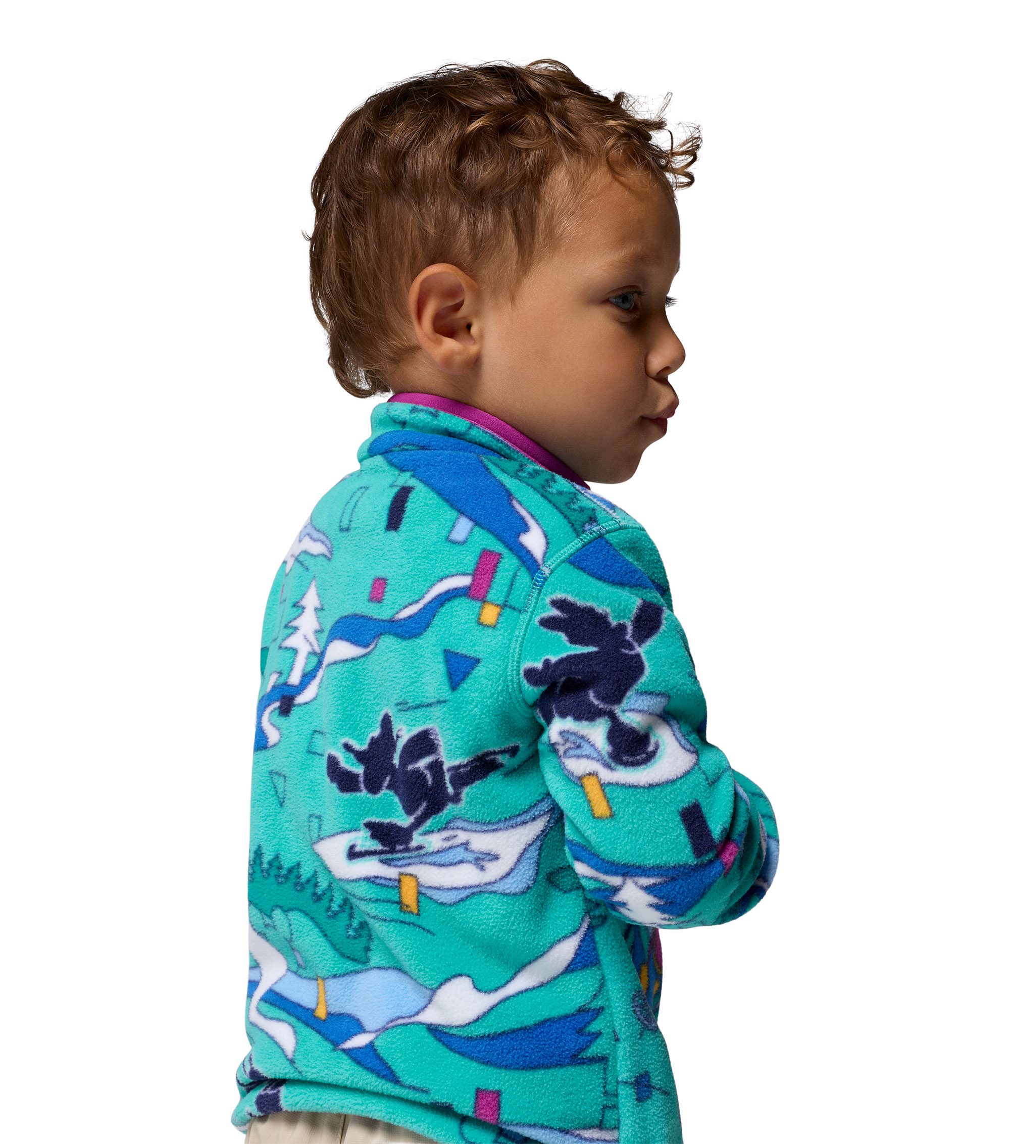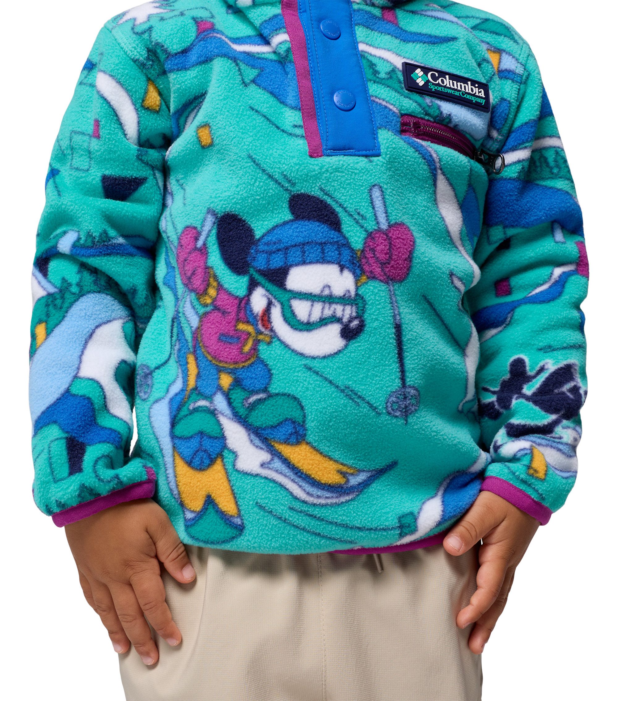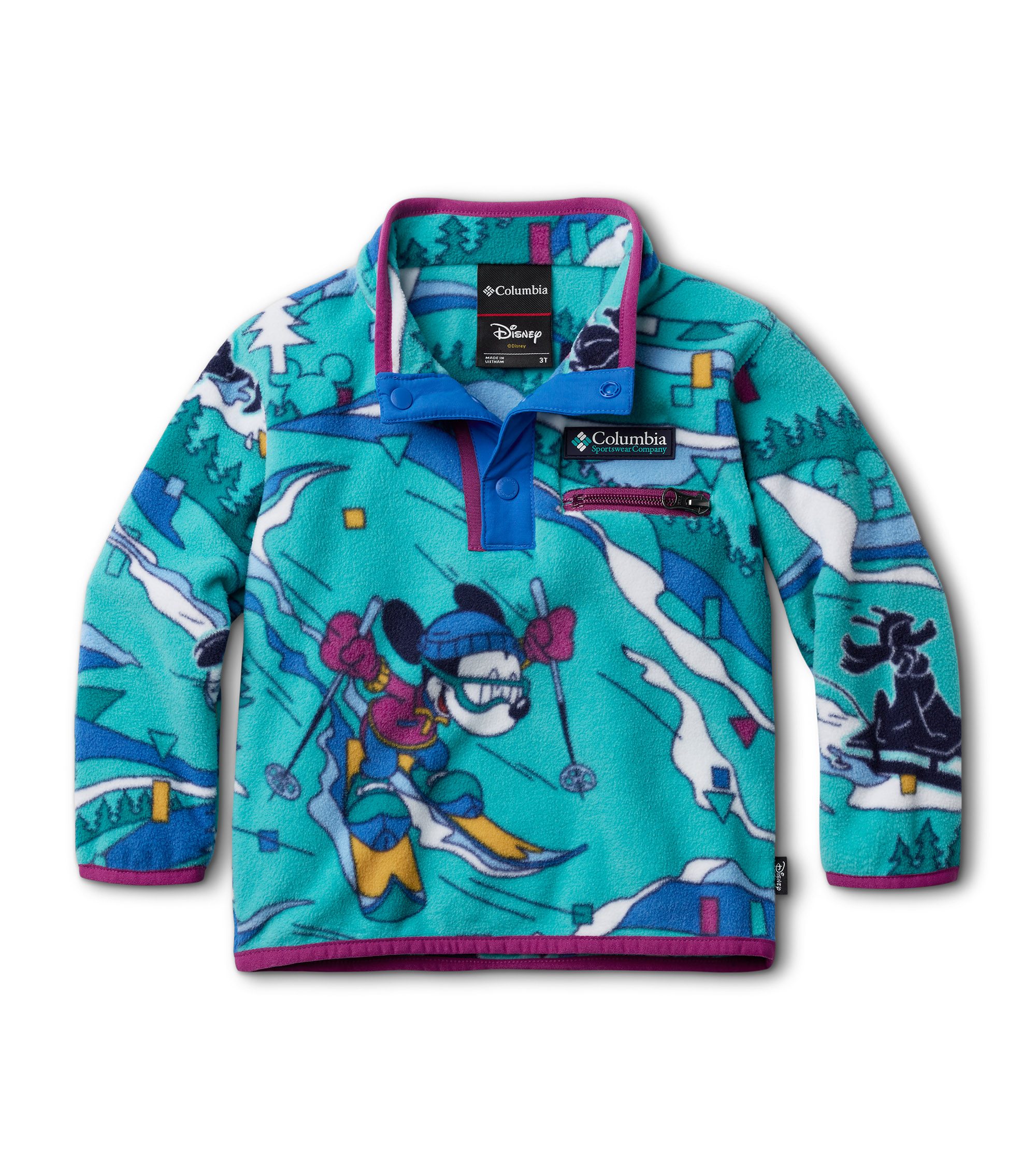 Keep them warm in this special-edition fleece with '90s-inspired prints featuring Disney's Mickey & Friends on a dream ski vacation. With binding on the cuffs and hem, cold stays out and warmth stays in.
